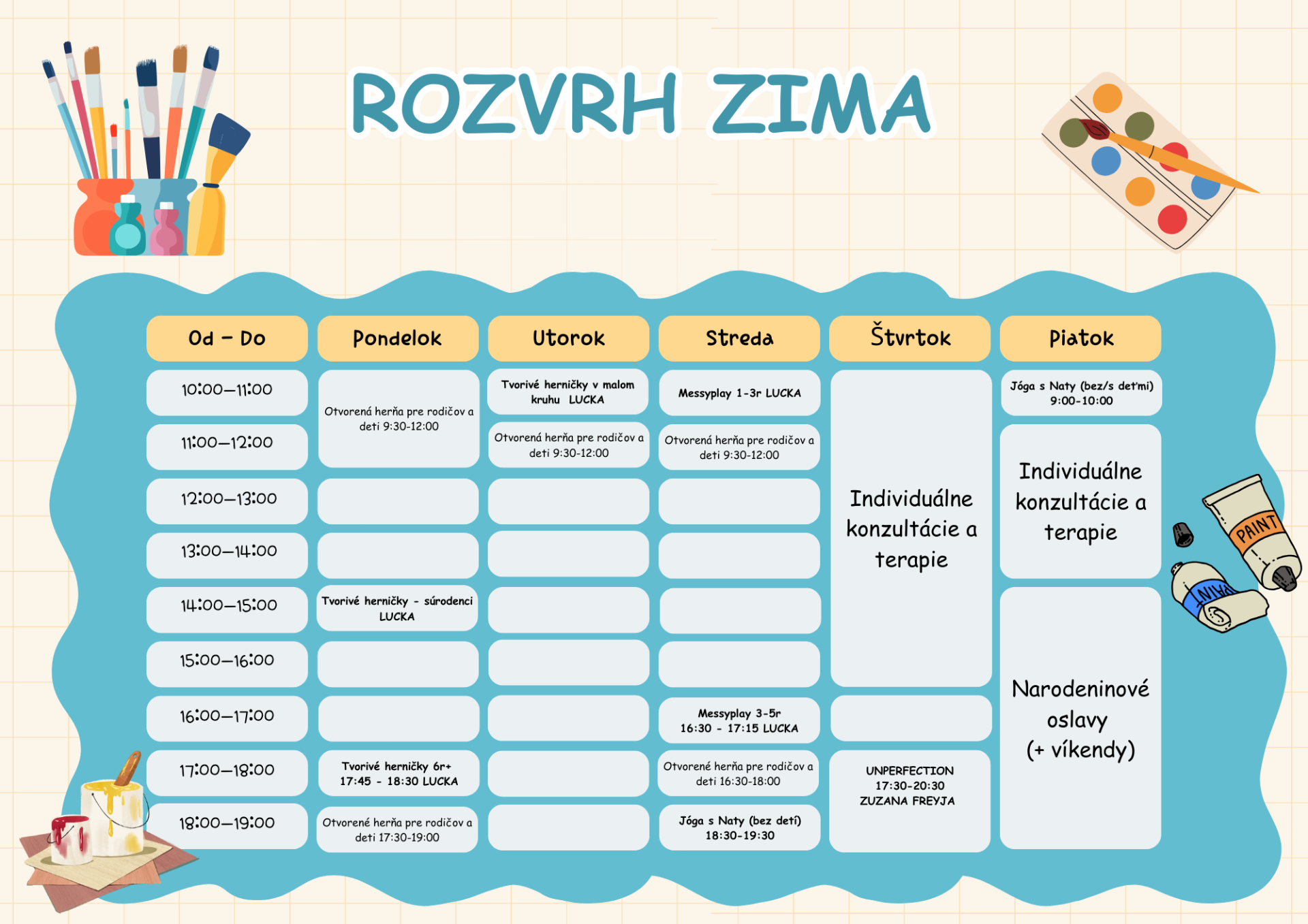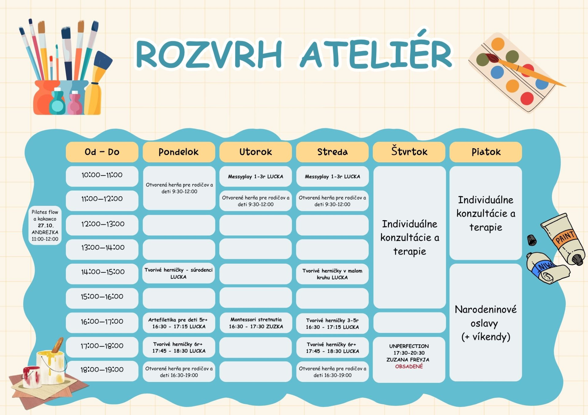 👩🎨 Kapacita: 10 detí + rodičia (dobrovoľné ale vítané)